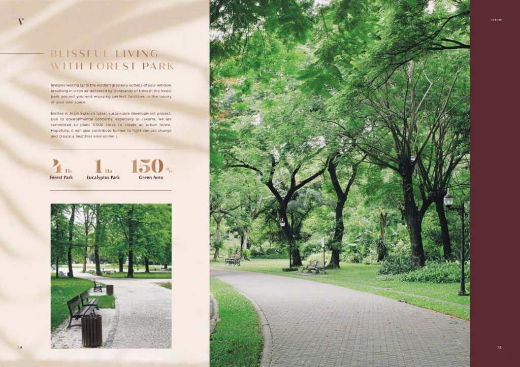 Suatu konsep yang tidak akan anda temui di tempat lain. Elevee Penthouses & Residences ini akan terhubung langsung dengan forest park seluas 4 hektar yang mengusung konsep serupa dengan Central Park di Manhattan, New York.