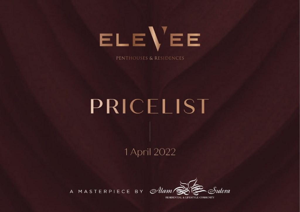 Elevee Alam Sutera menyediakan 300 unit, dimana masing-masing 10 unit di tiap lantainya. Setiap unit sudah dilengkapi dengan service area berisikan kamar tidur dan kamar mandi utk asisten rumah tangga. Tipe unit di Elevee tersedia tipe 2BR, 3BR & 4BR.
