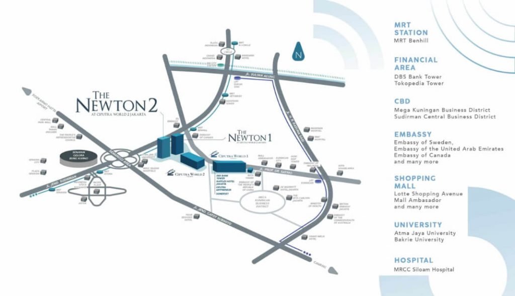 Setelah Sukses dengan Apartemen Newton 1, yang terjual 98% dalam waktu 2 Bulan, kini Ciputra meluncurkan Apartemen The Newton 2, Berlokasi di Ciputra World 2 Jakarta, Jl Prof Dr Satrio, berdampingan dengan The Newton 1, The Orchard Satrio, The Residence, The Suites Satrio dan The Office.